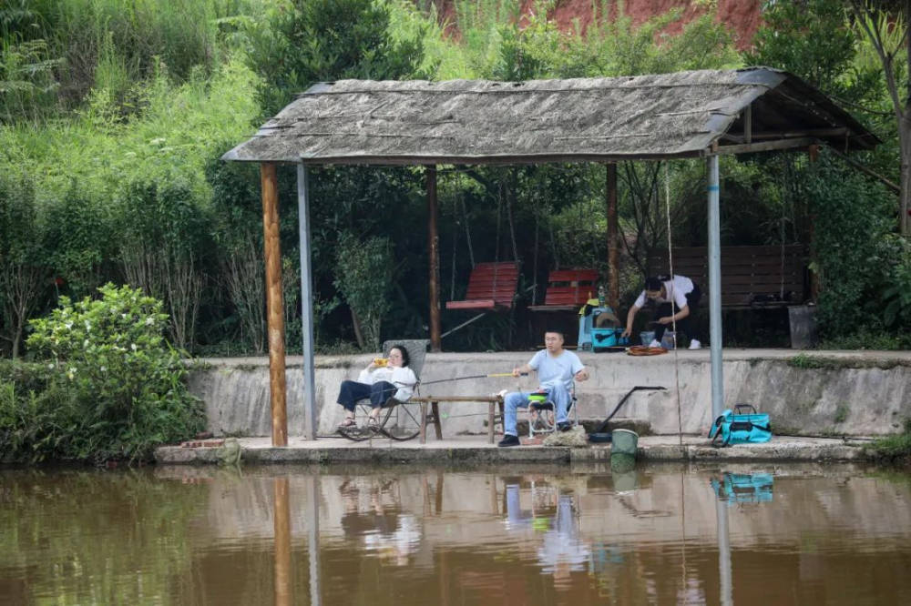 这里的鱼塘采用流水养殖,水源来自村里一处小溪,鱼类有鲫鱼、青波、鲢鱼、鲳鱼、草鱼等品种,其鱼质鲜嫩可口,是粮食喂养的放心鱼。垂钓上岸的鱼儿既可以打包带走,也可以就地烧烤烹饪。这里的烧烤远近有名,除了麻辣烤鱼之外,还有秘制烤肉、扇贝、基围虾、龙虾等食材。如果准备留宿,9间精致的民宿定不会辜负游客打卡乡村田园的期许。