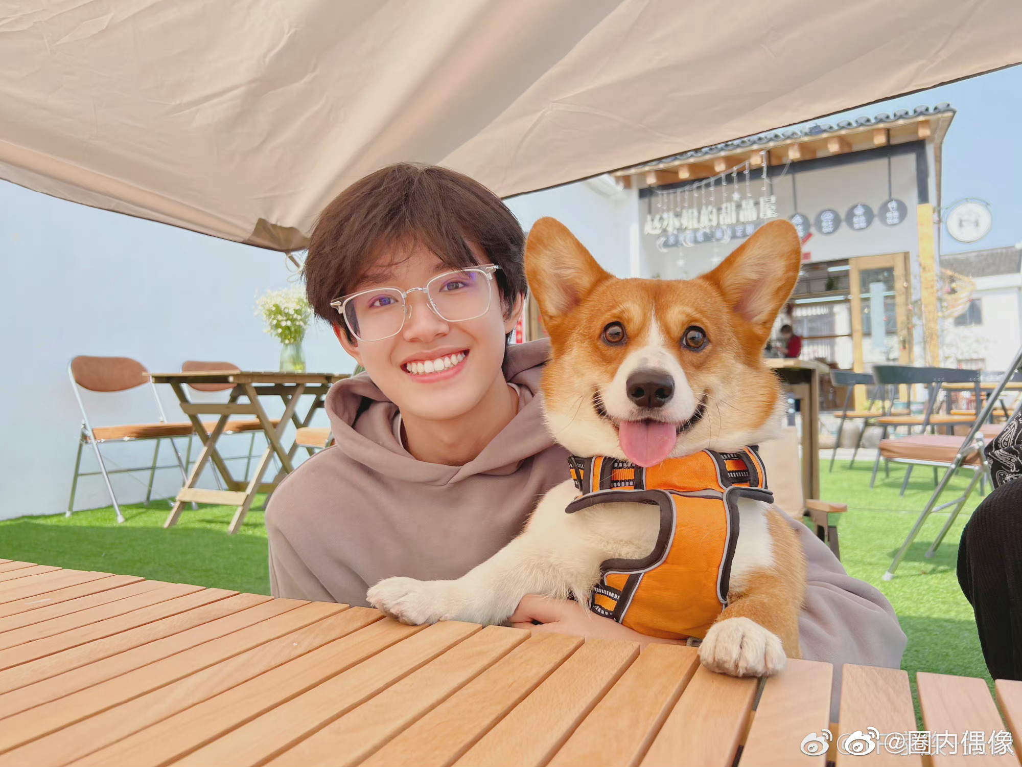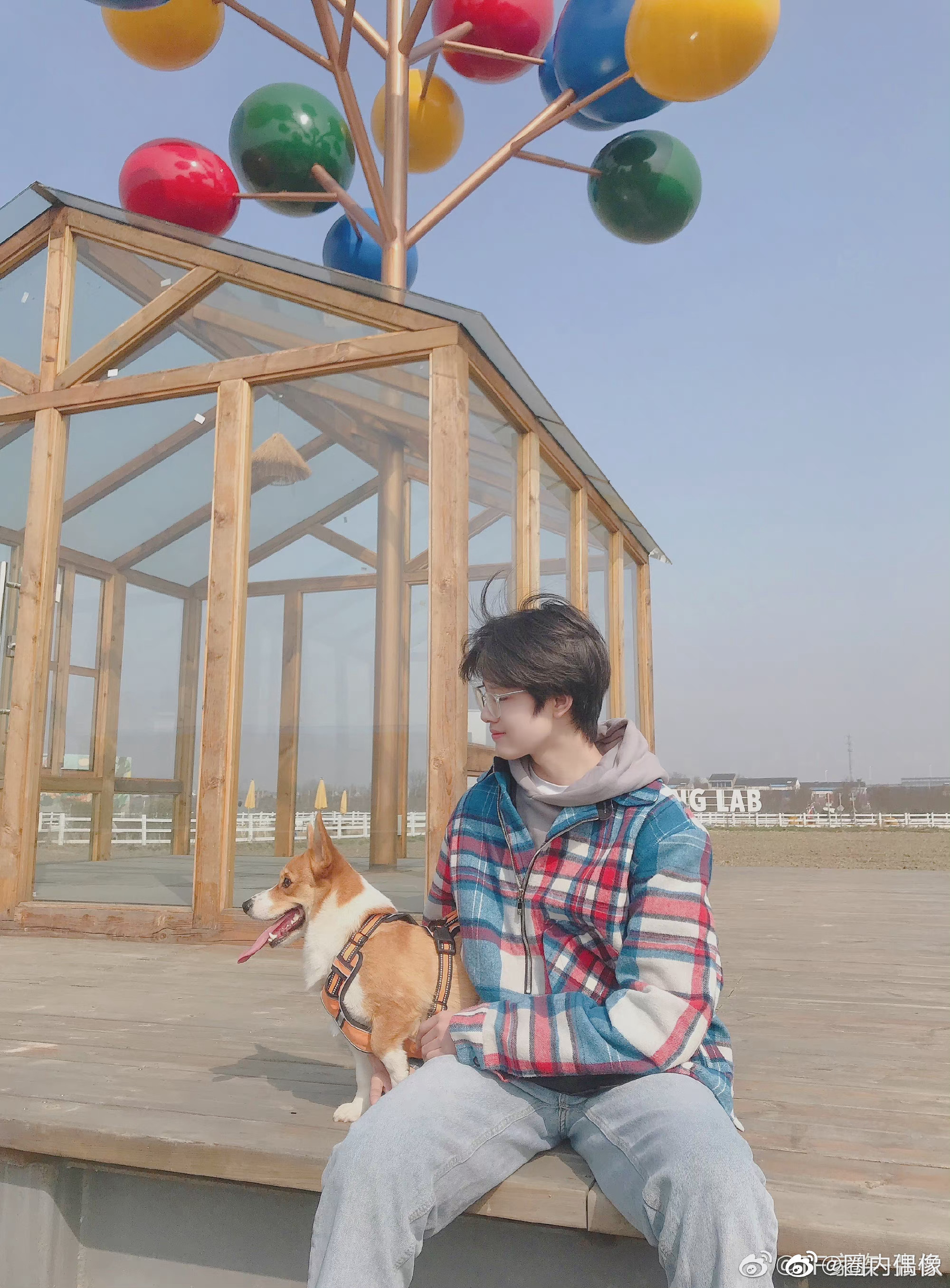 户外和狗狗的合照好可爱,笑容太甜了