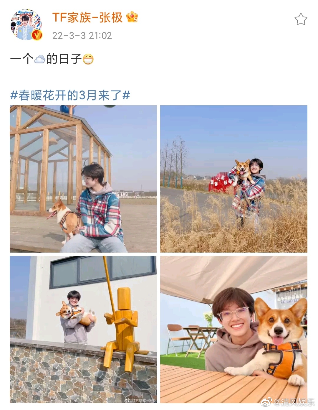是新鲜的户外随拍,和狗狗合照也太可爱了,笑的好开心啊!#张极户外随拍#
