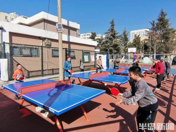 2月27日,岛城市区天气晴好,正值周末,人们纷纷走到户外享受阳光沐浴。在吴兴路社区广场,不少市民在忙着健身运动,其中不少孩子在大人带领下来这里打篮球、乒乓球等,偌大的广场上一片热火朝天的运动场景。