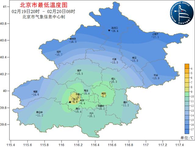 昨天夜间至今天早晨最低气温为-10.2℃。