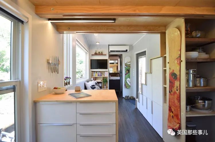 小屋有专门存放他们户外装备的房间,所以实际可用面积只有16.7平米。