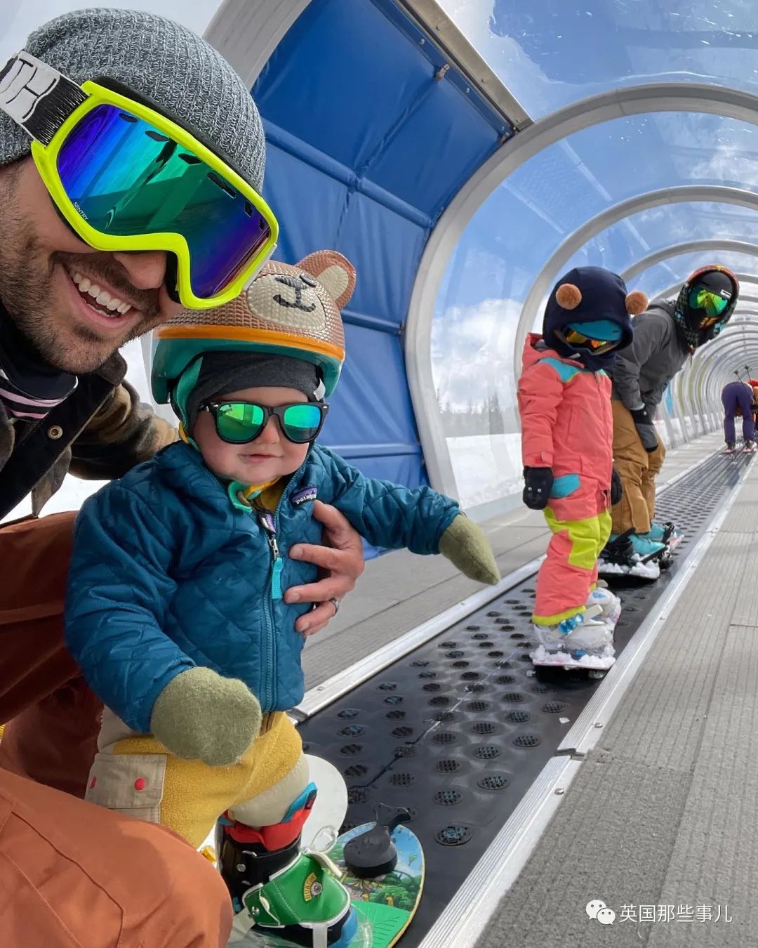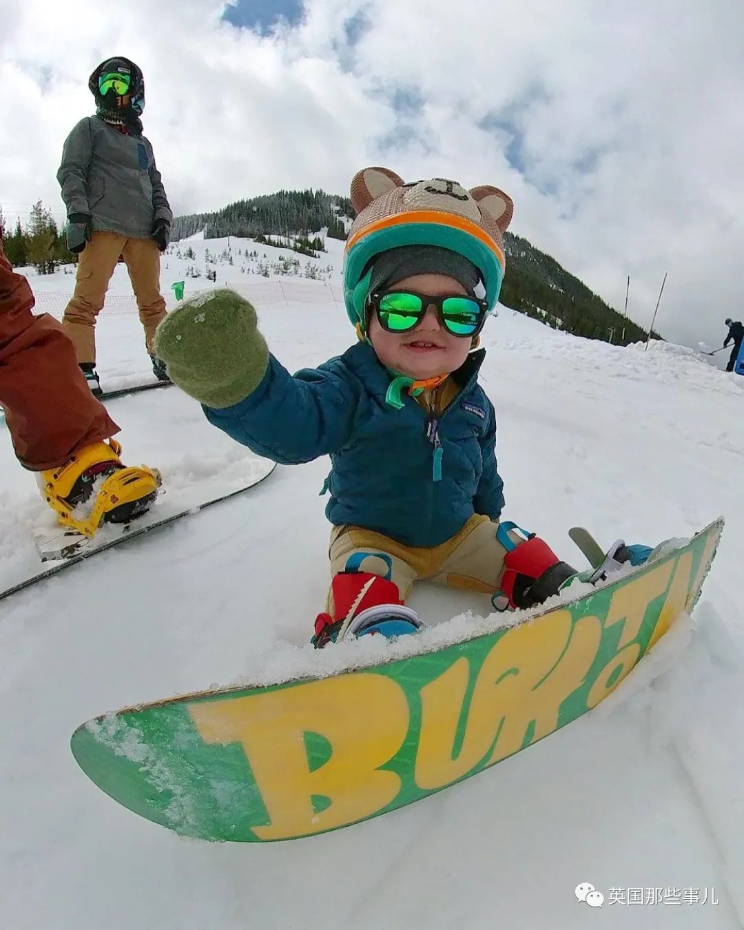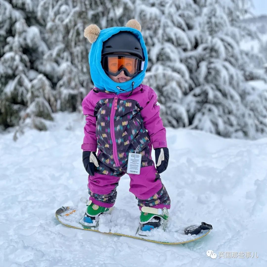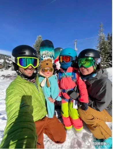在Aubrin 10个月大的时候,他们就买了前置的儿童背带,带她去体验了一下滑雪。