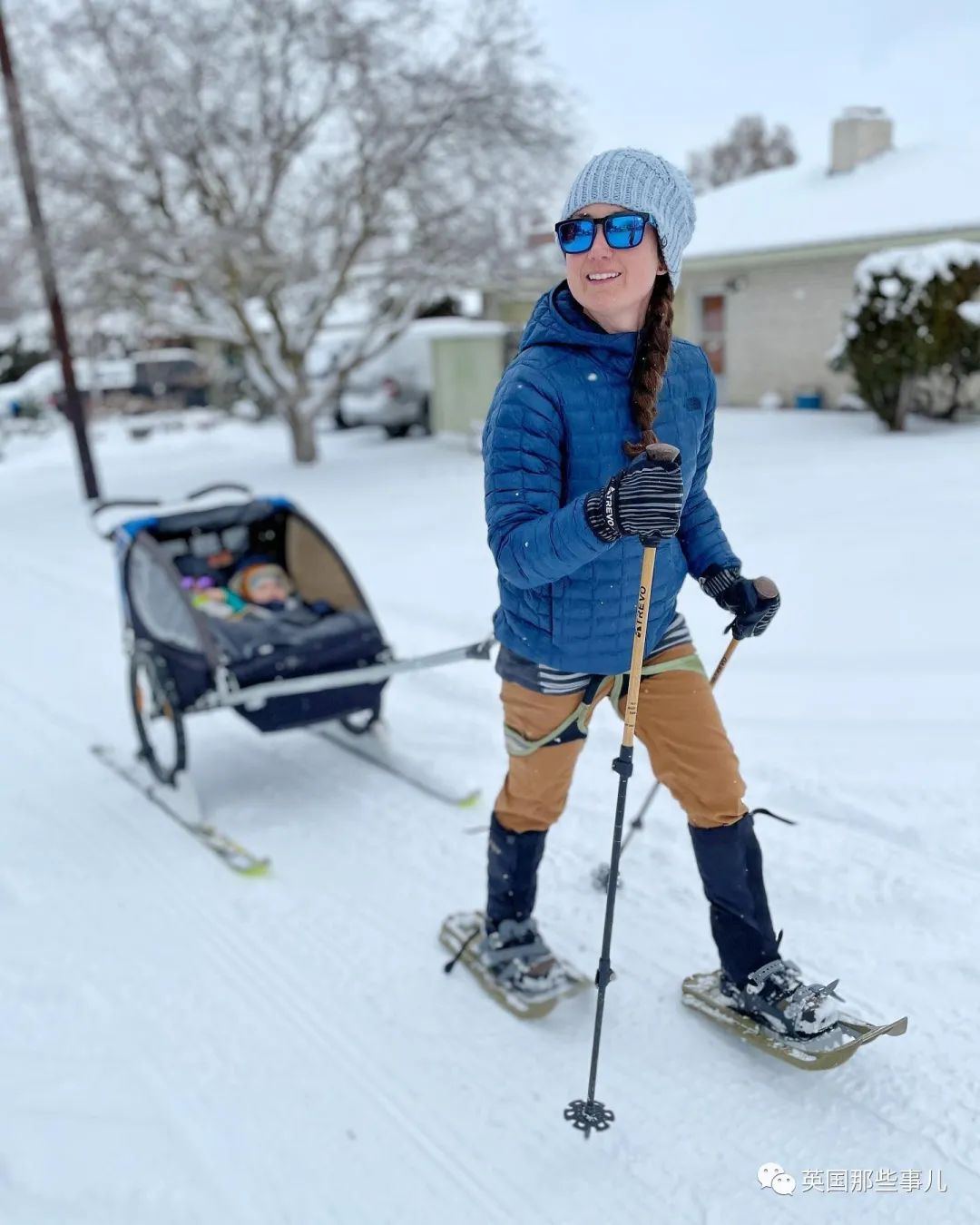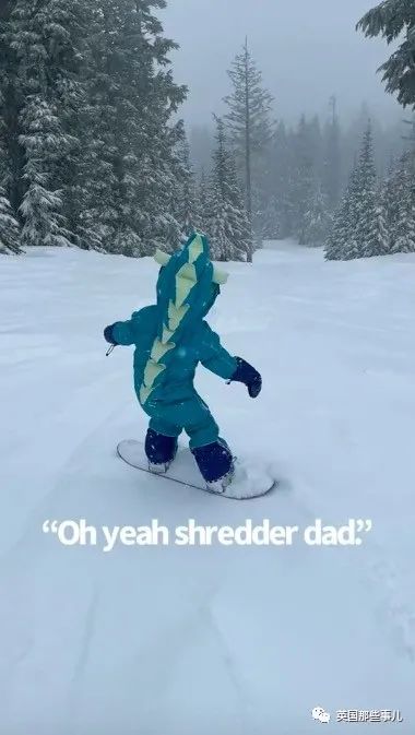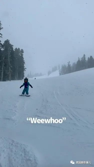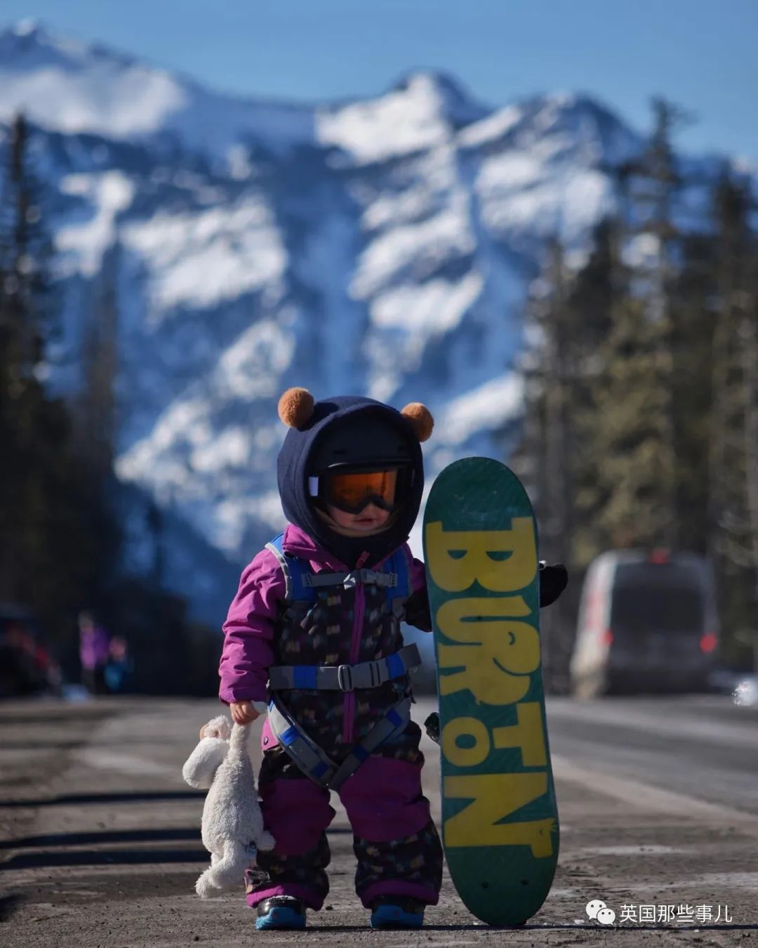 在Aubrin 10个月大的时候,他们就买了前置的儿童背带,带她去体验了一下滑雪。