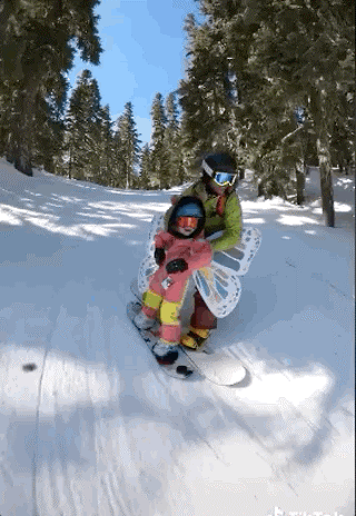有时从抱着她胳膊,让她感受自由滑雪的魅力。