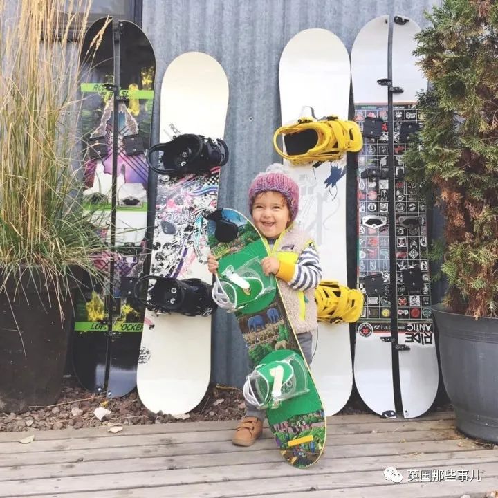 Aubrin 18个月大时,有了自己的小滑雪板。