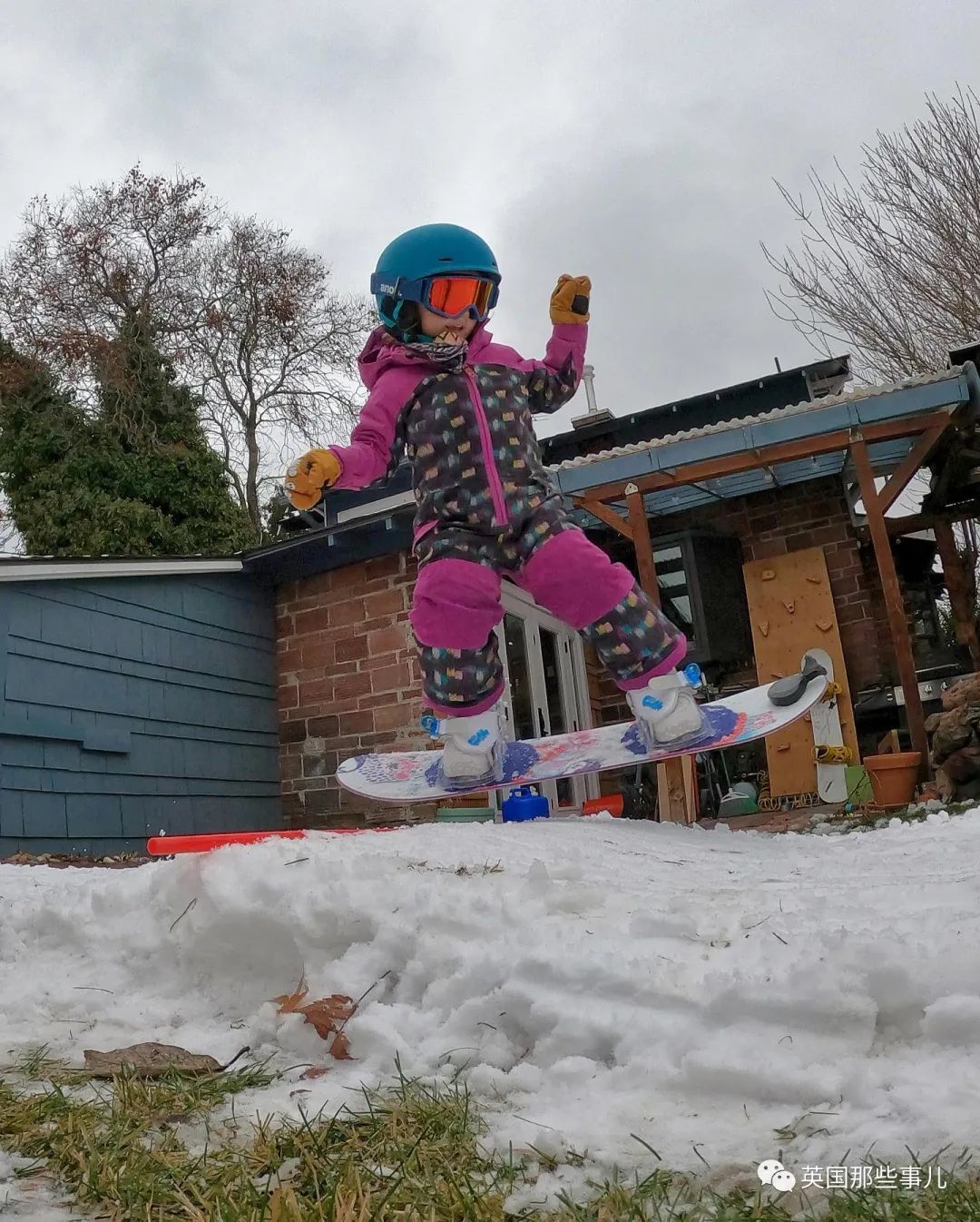 没法去滑雪场的时候,Aubrin还会在自家后院的小雪地上练习。
