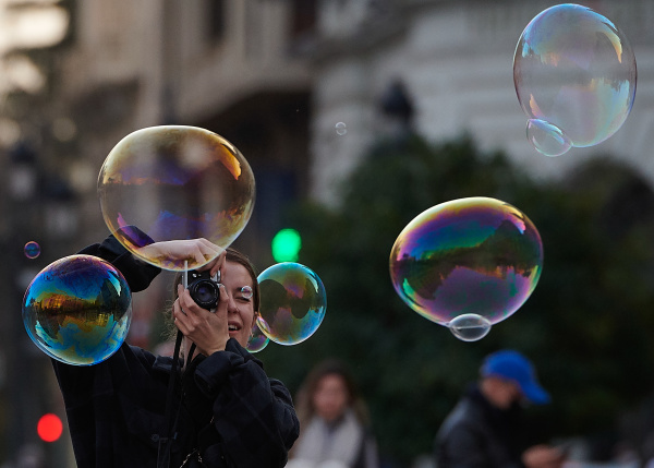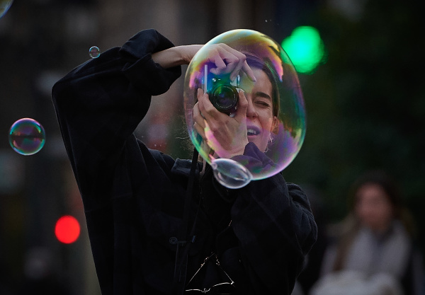 2月11日,一名女子在西班牙巴伦西亚市中心拍摄照片。新华社发(帕布罗·莫拉诺摄)